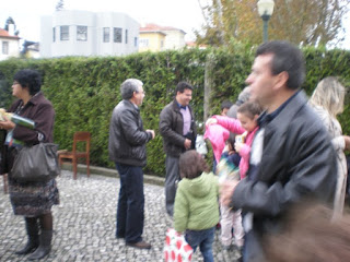 No acolhimento tivemos, no átrio da Igreja, os utentes do centro Social a cantar.